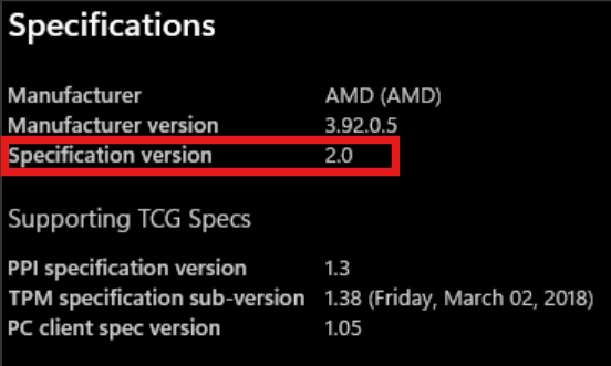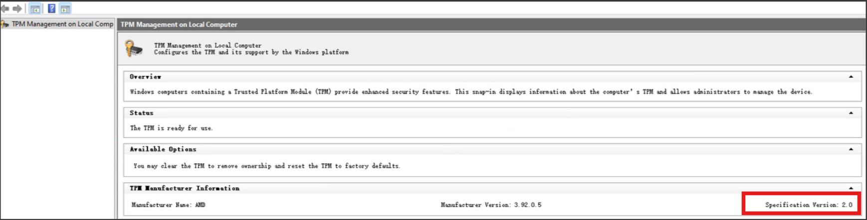 After consulting with the relevant department, the "Specification 2.0" shown in the screenshot you provided indicates that the current TPM is already version 2.0.