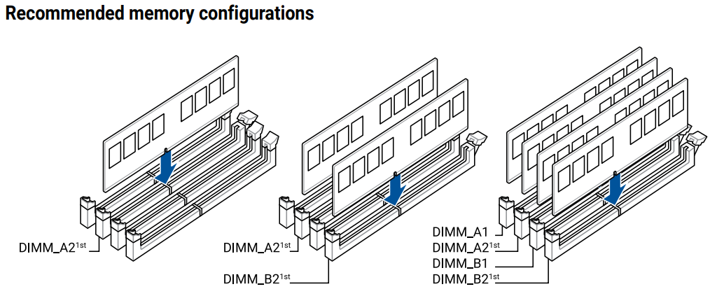 - What is the full memory part number (e.g., CMK64GX5M2B6000Z30W (Ver 5.43.01)) and which two DIMM slots are the modules installed in?