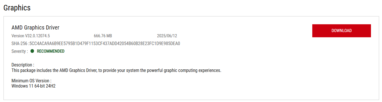 In my response, I recommended that you install the graphics driver version provided in our official download section, rather than the latest driver from AMD, because the drivers on our website have been fully validated for the specific model to ensure system stability. Based on the issue you described, which has existed since day one of use, I suggest performing a system restore and installing the ASUS official driver to verify whether the problem persists in a controlled and validated environment. We apologize for any inconvenience caused.